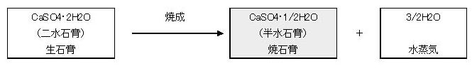 「焼石膏」を水に混ぜると、水和反応を起こし、再び元の「二水石膏」に戻って固まる。これは、焼石膏と水を混ぜて二水石膏へ変化する際に、