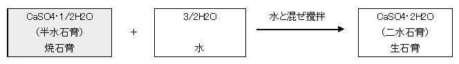 「焼石膏」を水に混ぜると、水和反応を起こし、再び元の「二水石膏」に戻って固まる。これは、焼石膏と水を混ぜて二水石膏へ変化する際に、